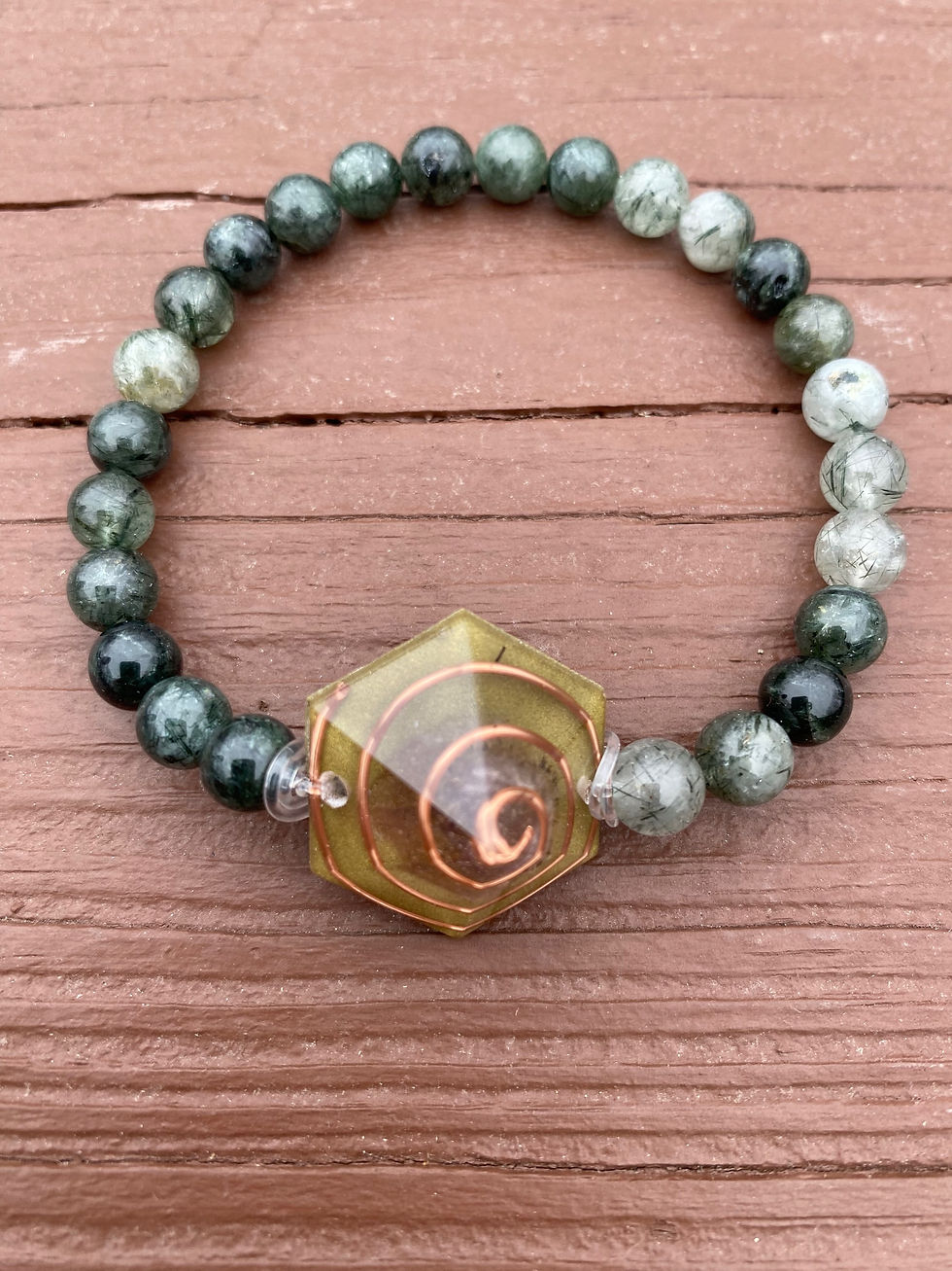 Hexagonal Green Rutilated Quartz Bead Amethyst Orgone Bracelete